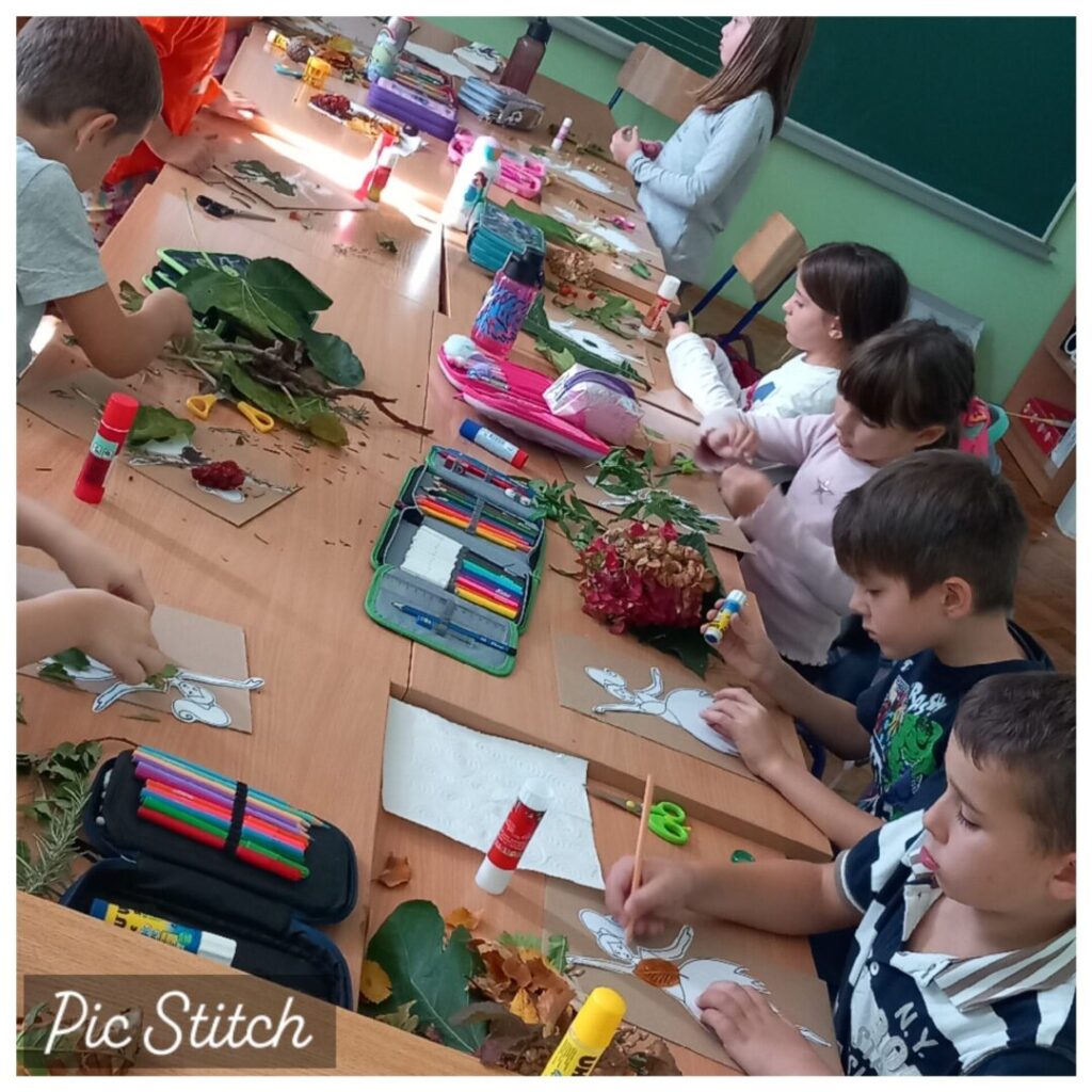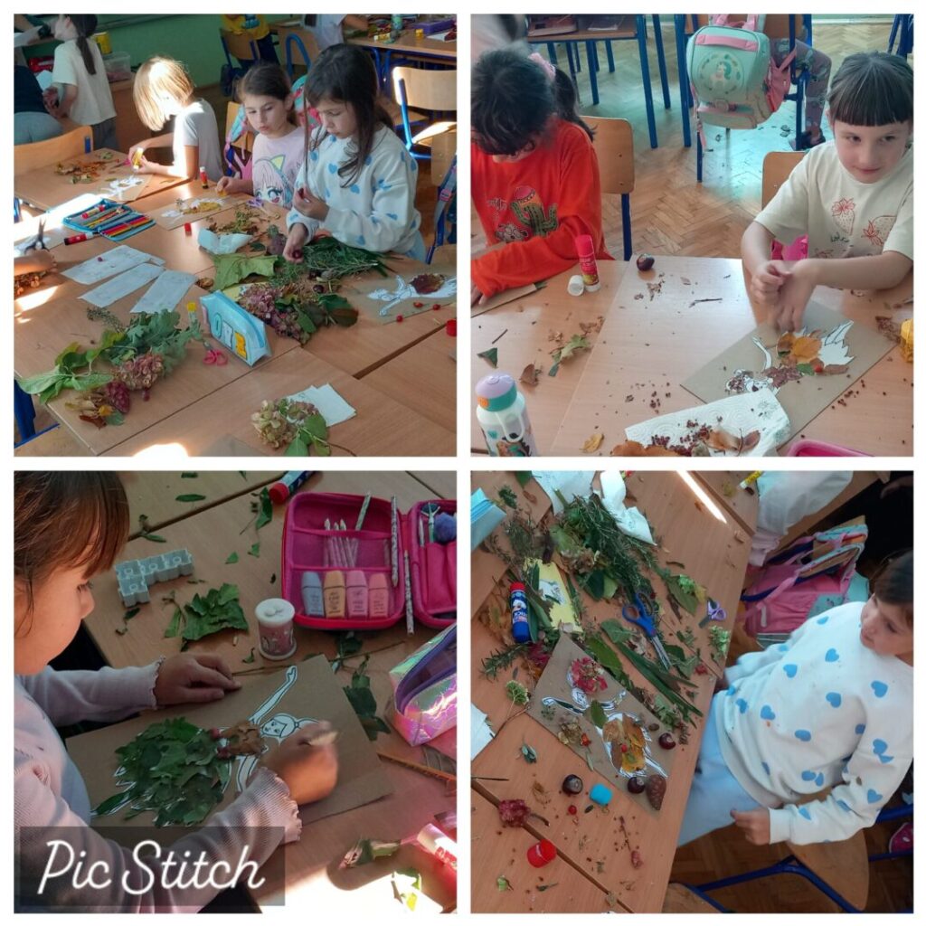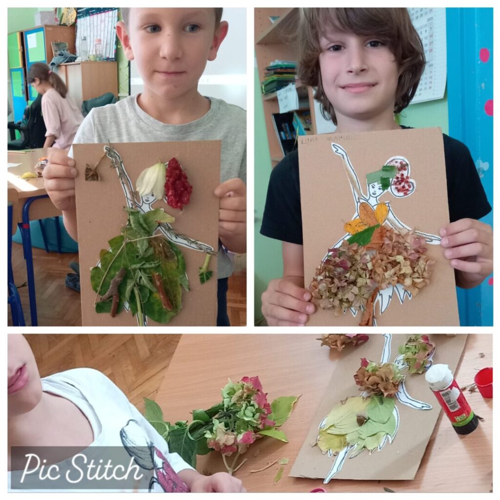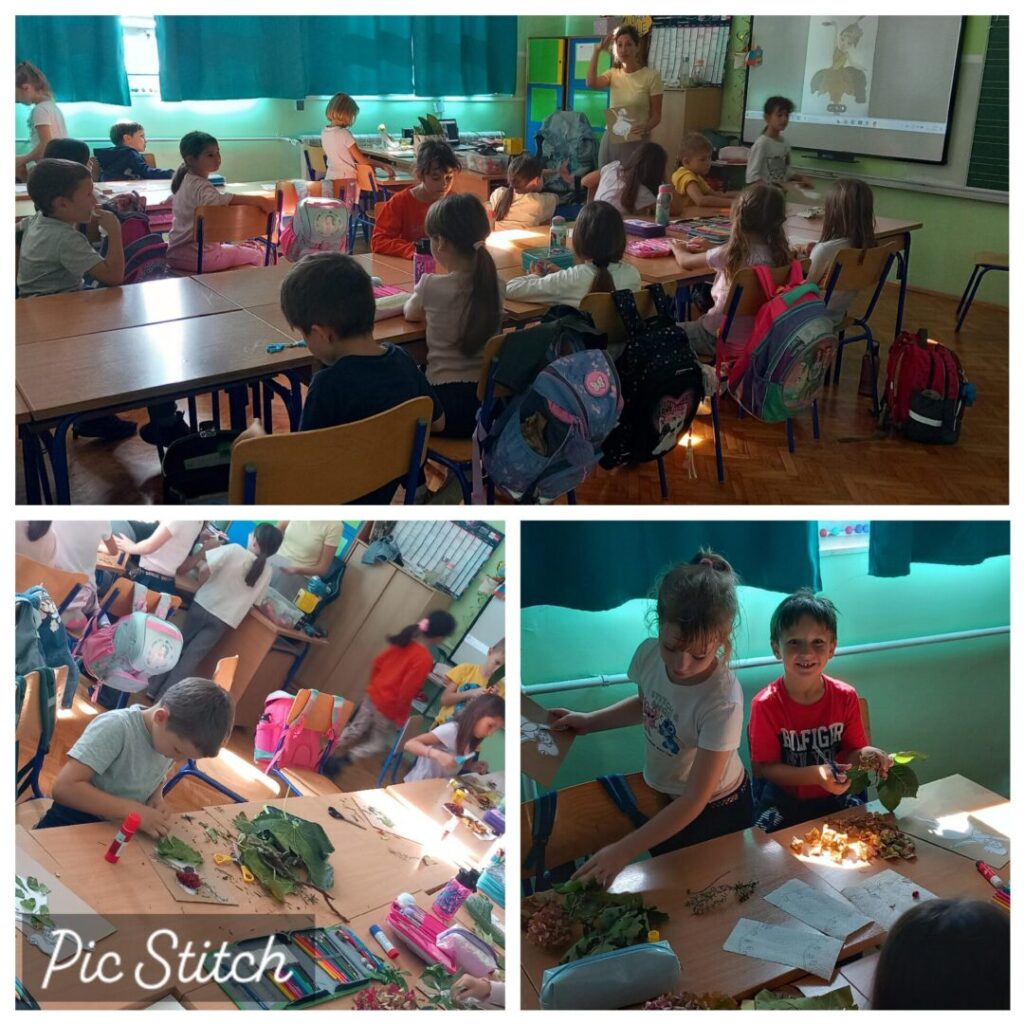 Najšarenije godišnje doba JESEN bilo nam je inspiracija za kreativnu radionicu. Veseli petak započeli smo pričom Jesen u našem gradu. Potom smo na stolove izvadili sve šarene listiće i cvjetiće kao i plodove jeseni koje smo marljivo prikupljali pokraj svojih kuća. Zadatak je bio napraviti Gospođu Jesen. Vrijedne ručice za tili čas uz pomoć učiteljice i Tinine mame stvorile su prekrasne kreacije koje će krasiti našu učionicu.