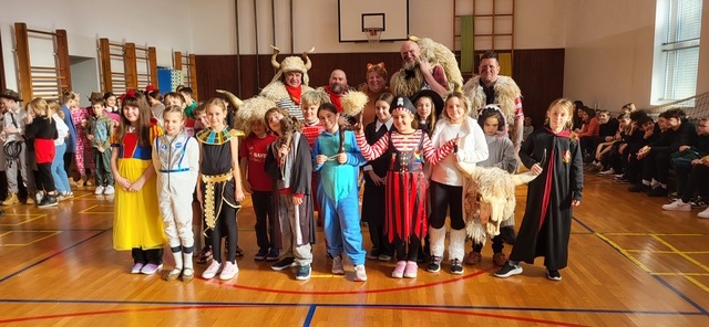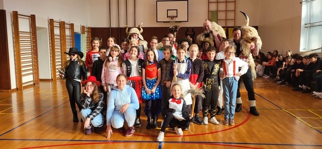 Učenici i učitelji razredne nastave naše škole su prošlog petka, 30. 1. od ranoga jutra disali za karneval. Tijekom prijepodneva natjecali su se u međurazrednim sportskim igrama, a zatim su s prijateljima iz predmetne nastave i ostalim djelatnicima dočekali predstavnike Zametskih zvončara i Grobničkih dondolaša. Oni su svima prisutnima prezentirali impresivno kretanje u zvončarskom kolu i opremu koju nose te s učenicima razgovarali o tradicijskoj ulozi zvončara. Hvala našim dragim gostima što su svojim dolaskom uveličali ovaj maškarani dan! Živio pust!