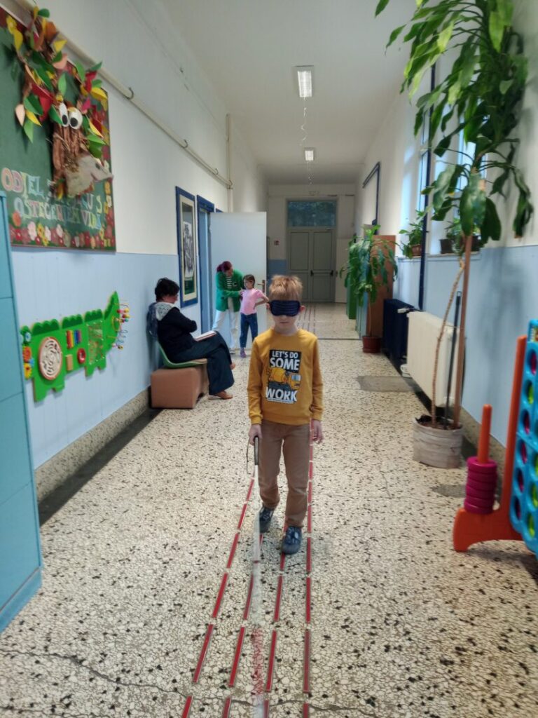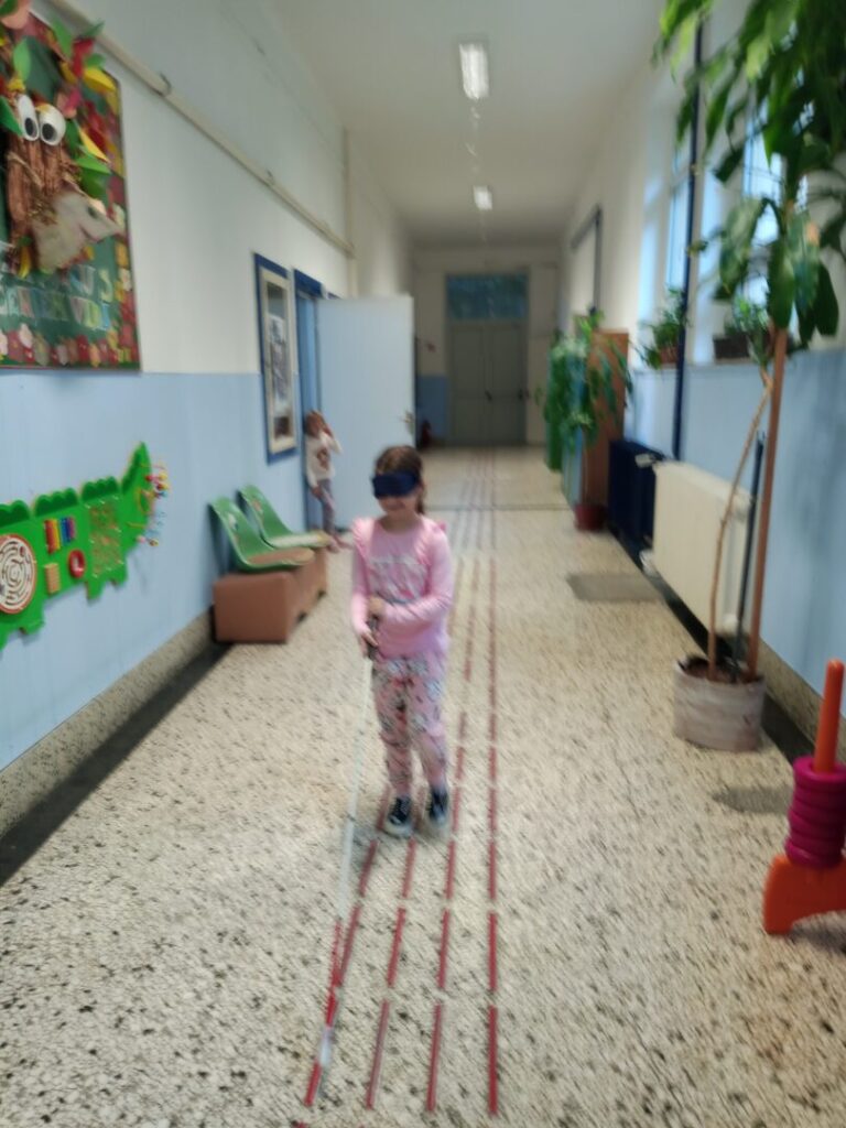 Za kraj su se prvašići sami okušali u kretanju bijelim štapom po taktilnoj stazi u hodniku naše škole. Iskustvo je to koje ih je zasigurno posebno dojmilo.Ova je aktivnost ujedno i dio podrške kampanji „I ja želim čitati“, jer senzibilizacija je prvi korak prema stvaranju inkluzivnog i pristupačnog okruženja za sve.