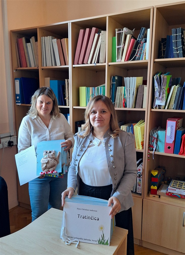 Dana 16. listopada 2025. posjetile su nas učiteljica Jadranka Novak i stručna suradnica knjižničarka Jasminka Bertović iz OŠ „Sveti Matej“ Viškovo. Povod je bilo obilježavanje Međunarodnog dana bijelog štapa te je učiteljica Jadranka Novak predala Prvoj dječjoj knjižnici za djecu s oštećenjem vida taktilne slikovnice koje je izradila. Taktilna slikovnica „Tratinčica“ adaptirana je i prilagođena bajka H.C. Andersena u kojoj čitatelja upoznajemo s najplemenitijim ljudskim osjećajima, dok taktilnom slikovnicom „Miševi i mačke naglavačke“ učiteljica Novak mališanima približava šaljive i zabavne, a zapravo vrlo poučne stihove Luke Paljetka. Velika je vrijednost i značenje taktilnih slikovnica učiteljice Novak jer slijepoj i slabovidnoj djeci ne samo da omogućavaju uživanje u dječjoj književnosti, nego im i pomažu u učenju i prihvaćanju značenja osnovnih životnih vrijednosti. Njezin trud spaja dva svijeta – svijet knjige i svijet osjetila – i pokazuje kako čitanje može biti dostupno i čarobno za svako dijete.