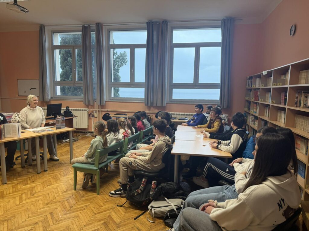 Odmah nakon dugih zimskih praznika ugostili smo spisateljicu Helenu Janežič i ilustratoricu Polonu Kosec. U utorak, 13. siječnja na satu slovenskog jezika posjetile su nas spisateljica Helena Janežić i ilustratorica Polona Kosec, koje su nam u školskoj knjižnici predstavile knjigu Ćukić Nukić. Slikovnica je napisana na slovenskom i hrvatskom jeziku. Učenici su bili upoznati sa sadržajem priče kao i sa radom i osnivanjem Narodne i sveučilišne knjižnice u Ljubljani. Bilo je zanimljivo i poučno.