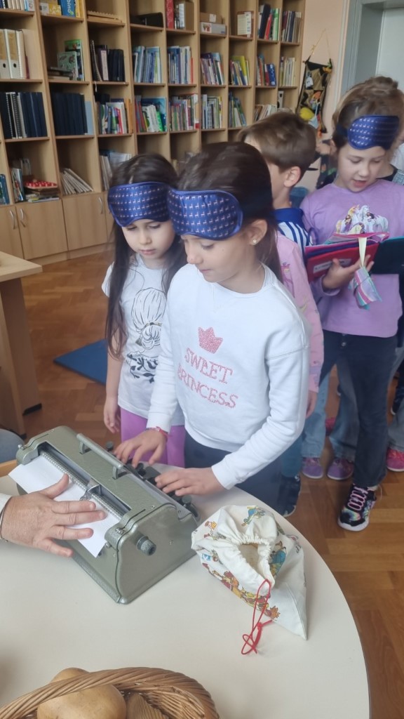 Dana 2. listopada 2025. učenici 1. razreda posjetili su dvije knjižnice, redovnu školsku knjižnicu i Prvu dječju knjižnicu za djecu s oštećenjem vida. U redovnoj školskoj knjižnici sudjelovali su u radionici Knjižnica – mjesto poticanja čitalačke pismenosti te su sa zanimanjem slušali priču „Miš u knjižnici“, autorice Sunčane Škrinjarić te razgovarali o likovima i fabuli priče. Saznali su što se sve u školskoj knjižnici nalazi i naučili pravila ponašanja. U Prvoj dječjoj knjižnici za djecu s oštećenjem vida učenici su se upoznali s taktilnim slikovnica, audio knjigama i različitim igrama prilagođenim djeci s oštećenjem vida. Naučili su kako se zove pismo za slijepe i sami se okušali u pisanju istoga. Za kraj su posjetili i senzornu sobu u sklopu Odjela za djecu s oštećenjem vida koja im se jako svidjela.