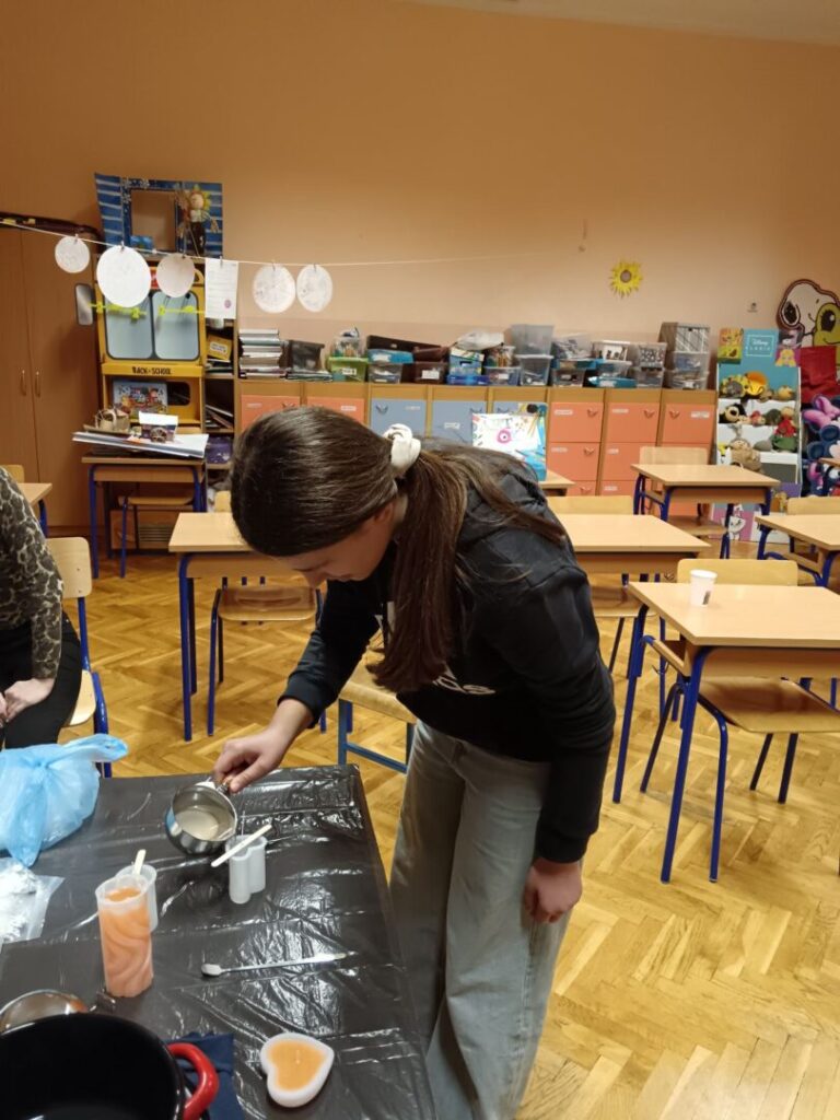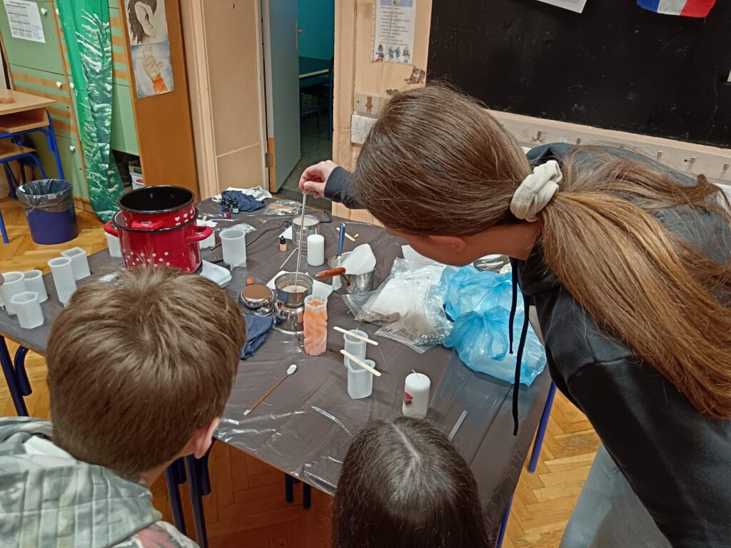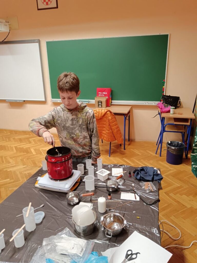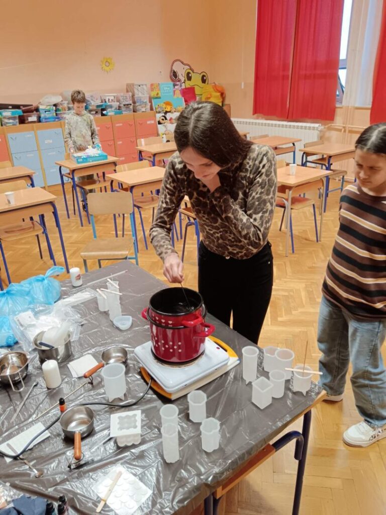 Učenici zadrugari jučer su sudjelovali na kreativnoj radionici u našoj školi, gdje su imali priliku naučiti kako se izrađuju svijeće.