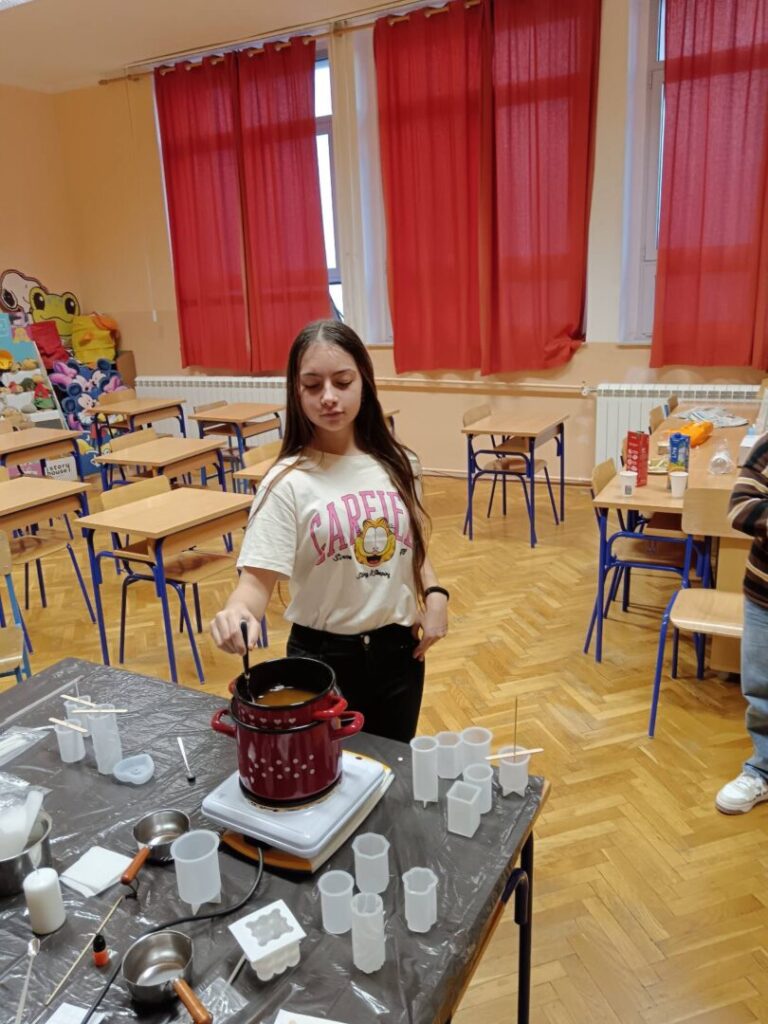 Tijekom radionice učenici su se upoznali s postupkom izrade svijeća – od pripreme materijala i topljenja voska do oblikovanja i završnog ukrašavanja. Uz stručno vodstvo gospođe Nevene Barbare Vukušić učenici su naučili nešto novo, a