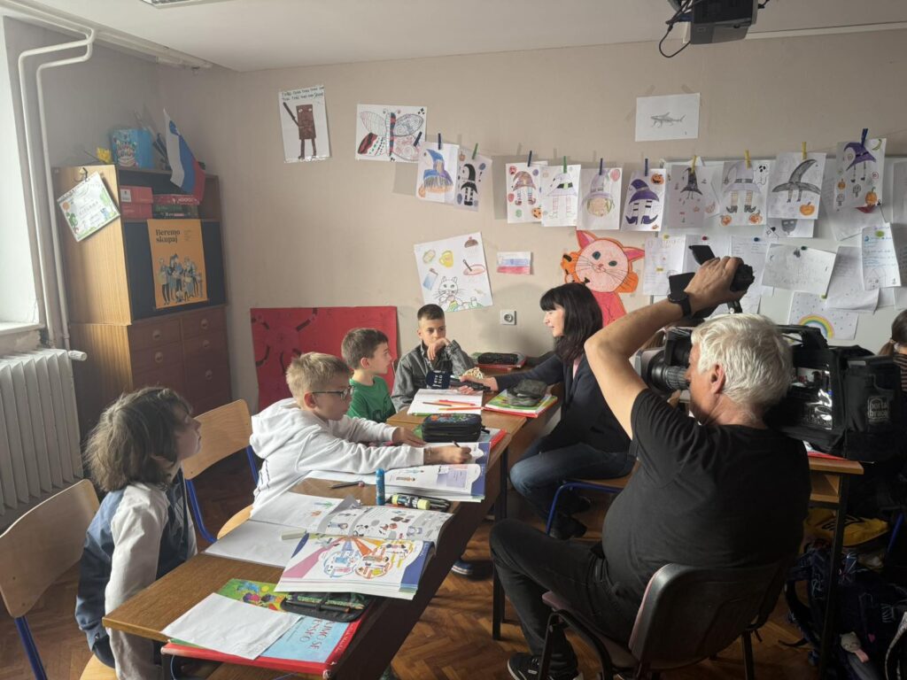 U četvrtak, 12.3. nas je posjetila ekipa RTV Koper kako bi snimila intervju sa učenicima slovenskog jezika. Razgovarali smo o knjizi Čukić Nukić i posjetu spisateljice H. Janežić. Pokazali smo što smo se naučili, što smo izradili a na kraju i zajedno zapjevali. Ovaj događaj nam je donio dodatnu motivaciju, a emisiju možete pogledati pod naslovom Rojaki na RTV Slovenija1 u utorak, 31.3. 2026. u 14:25.