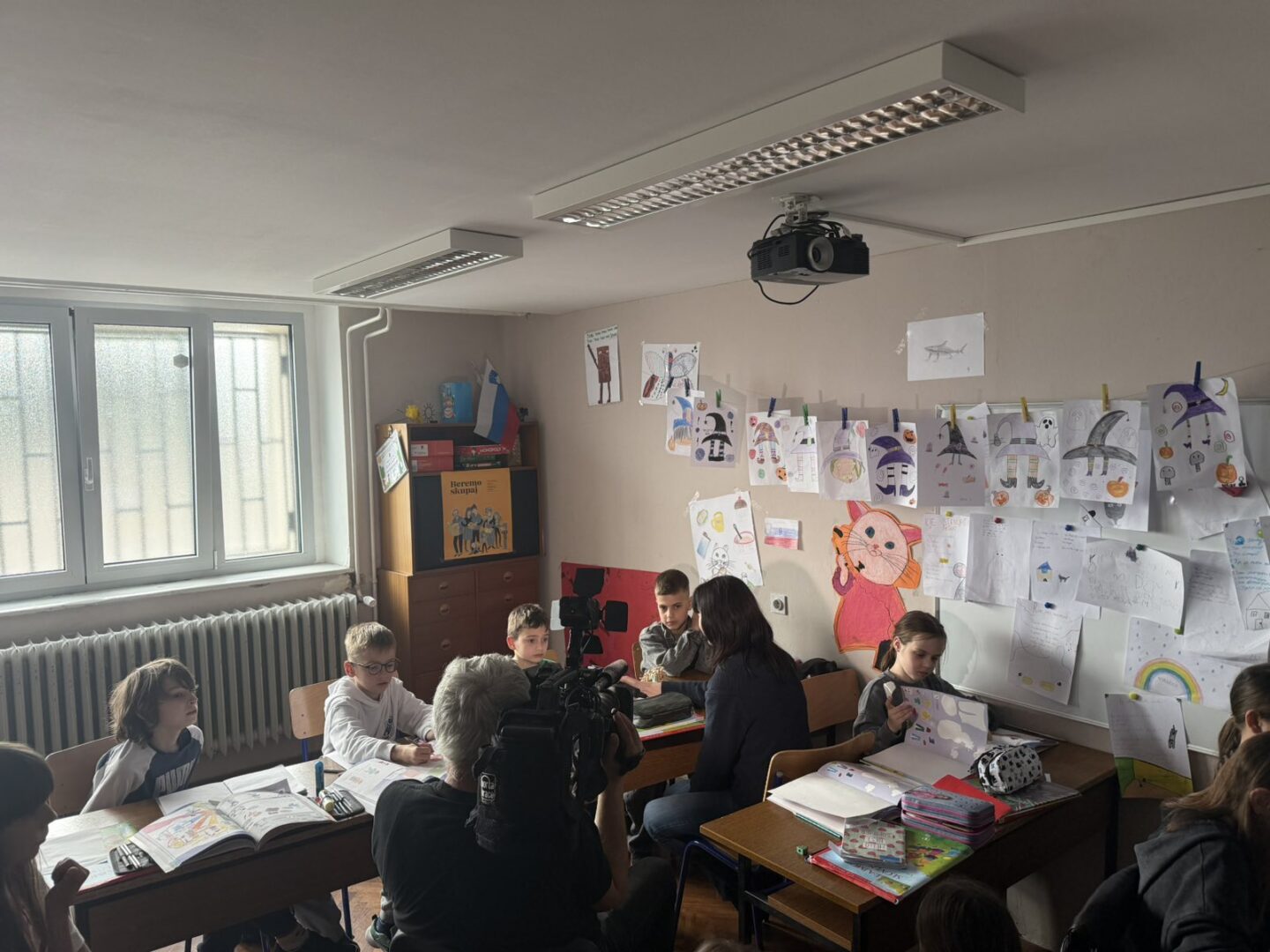 U četvrtak, 12.3. nas je posjetila ekipa RTV Koper kako bi snimila intervju sa učenicima slovenskog jezika. Razgovarali smo o knjizi Čukić Nukić i posjetu spisateljice H. Janežić. Pokazali smo što smo se naučili, što smo izradili a na kraju i zajedno zapjevali. Ovaj događaj nam je donio dodatnu motivaciju, a emisiju možete pogledati pod naslovom Rojaki na RTV Slovenija1 u utorak, 31.3. 2026. u 14:25.