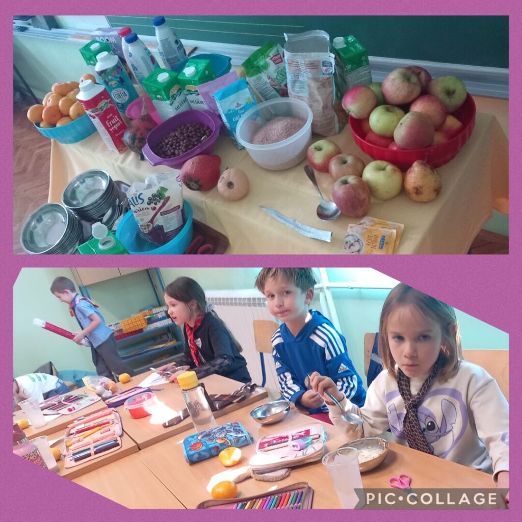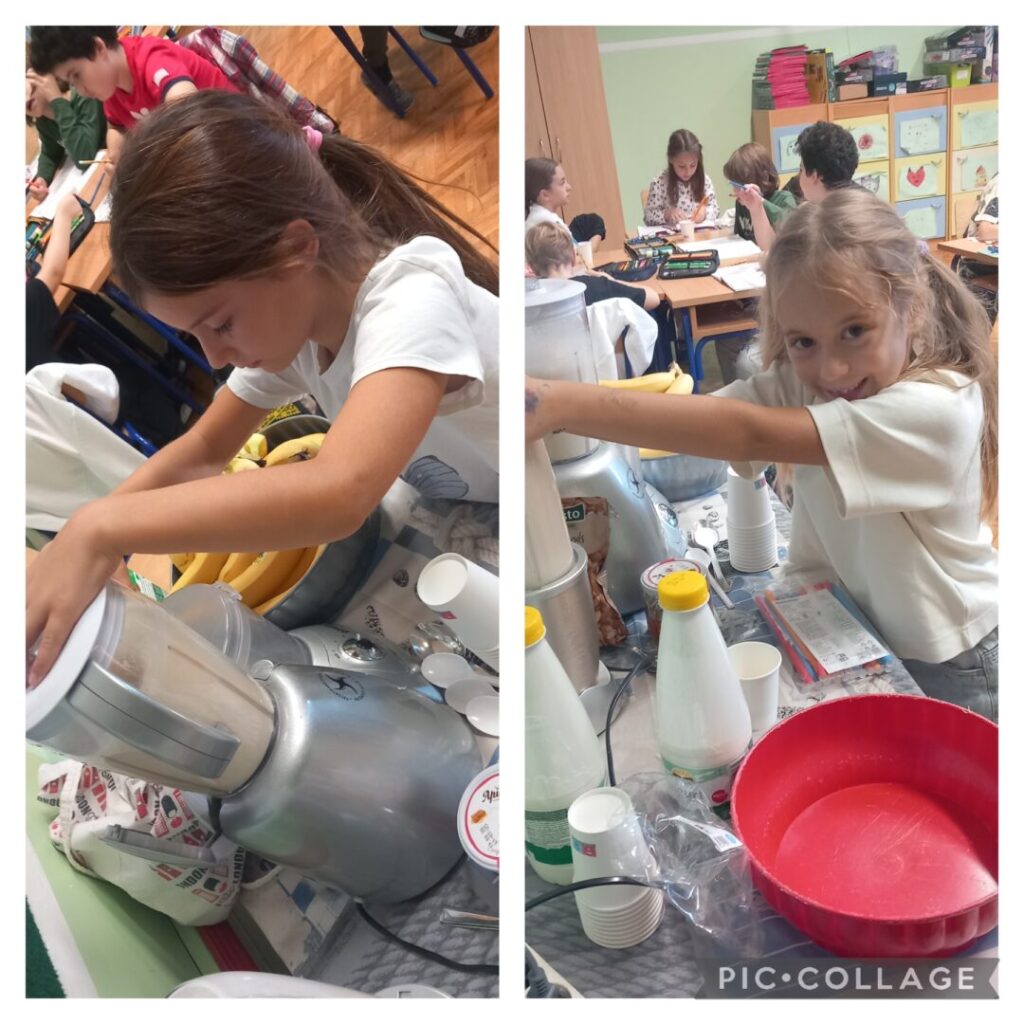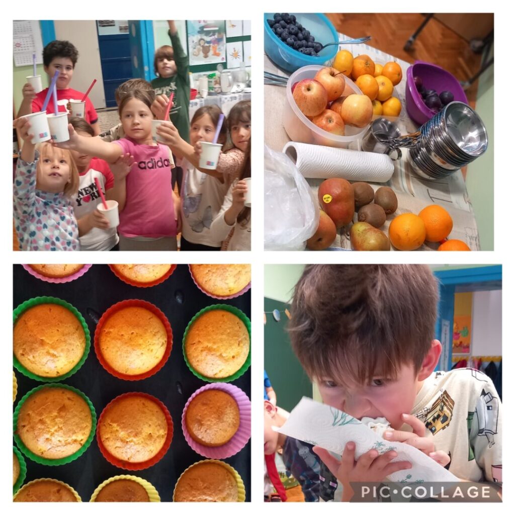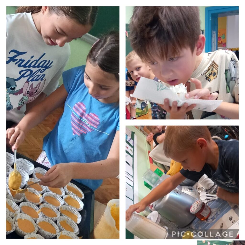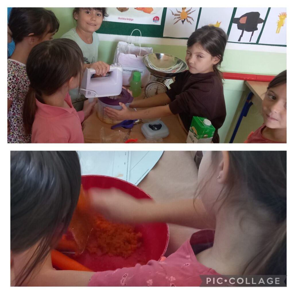 U tjednu od 13. – 17. listopada učenici produženog boravka zajedno sa svojim učiteljicama organizirali su Tjedan zdrave užine. Po uzoru na Tjedan zdravog doručka kojeg je pokrenuo Hrvatski zavod za javno zdravstvo, učenici produženog boravka uživali su u zdravoj užini. Ponedjeljak smo započeli pripremom ukusnog kolača od mrkve, namirnice koju sva djeca vole. Razgovarali smo o važnosti pravilne prehrane kao preduvjeta za dobra obrazovna postignuća, ali i za razvoj i zdravlje učenika. Najomiljenije voće učenicima su banane, stoga smo u utorak radili smuti od mlijeka ili jogurta, badema, meda i banane. Bilo je jako ukusno i hranjivo. Crtali smo omiljeno voće i povrće, te izradili piramidu zdrave prehrane. Srijeda i četvrtak bili su rezervirani za uživanje u voćnoj salati, a u petak smo organizirali, naravno uz pomoć naših roditelja pravu zdravu užinu.
