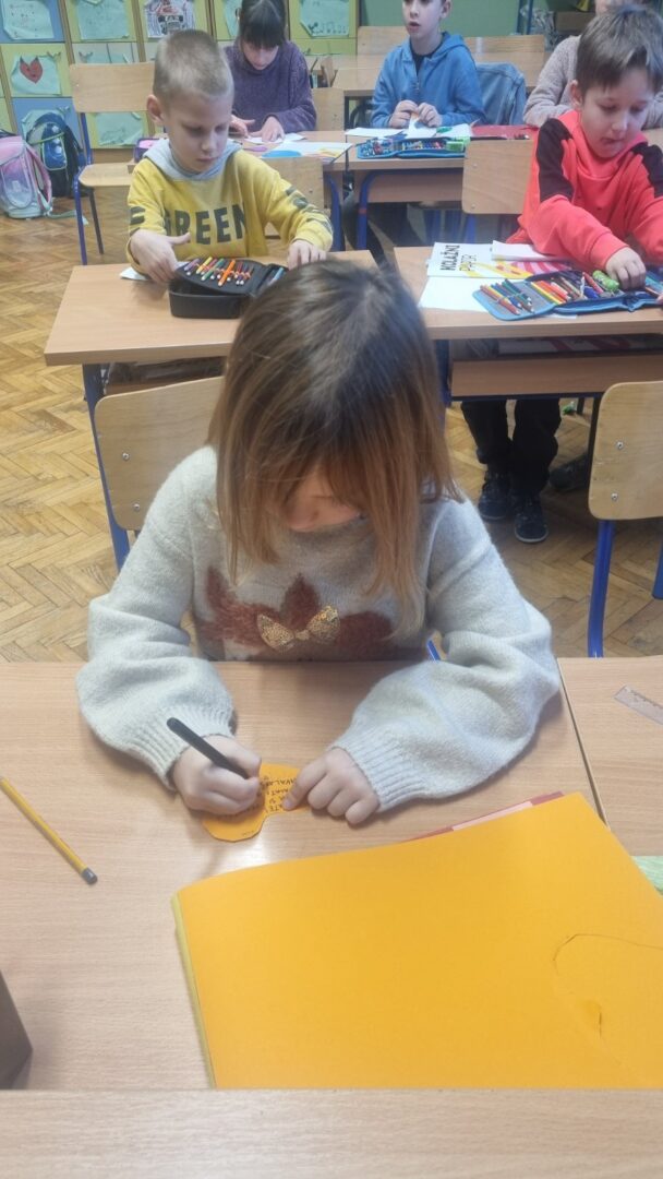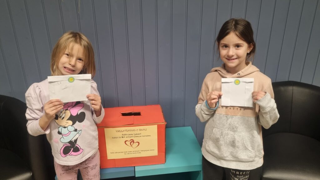 Prvašići su prvi put u životu napisali pismo, i to ljubavno. Izradili su kuvertu, izrezali srce od kolaža i zapisali poruku dragoj osobi iz škole.
