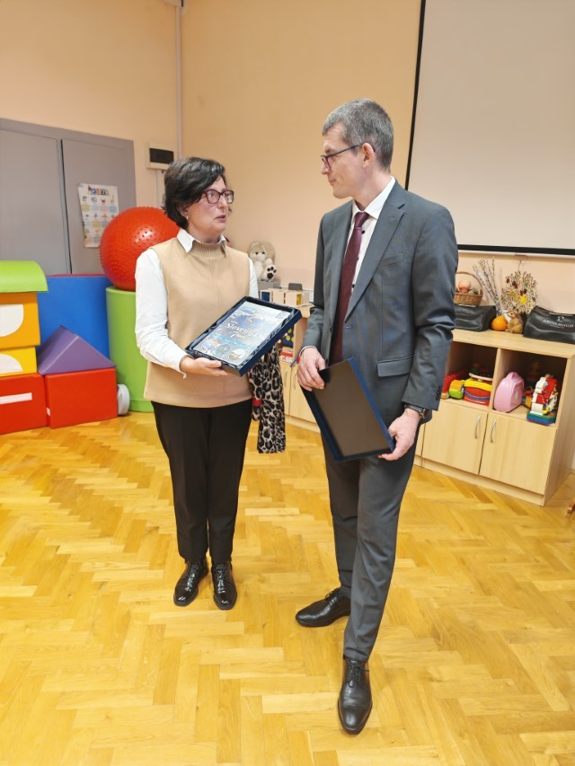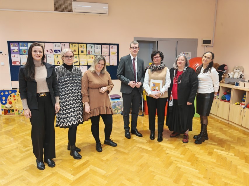 U našoj školi danas smo primili vrijednu donaciju – taktilnu slikovnicu Maca Papučarica (Muca Copatarica), klasično djelo slovenske autorice Elle Peroci, izrađenu u suradnji Veleposlanstva Republike Slovenije, koje je predstavljao veleposlanik Gašper Dovžan, i Tiflološkog muzeja. Ovaj jedinstveni primjerak doniran je Prvoj dječjoj knjižnici za djecu s oštećenjem vida te predstavlja važan doprinos razvoju pristupačne građe za naše korisnike.